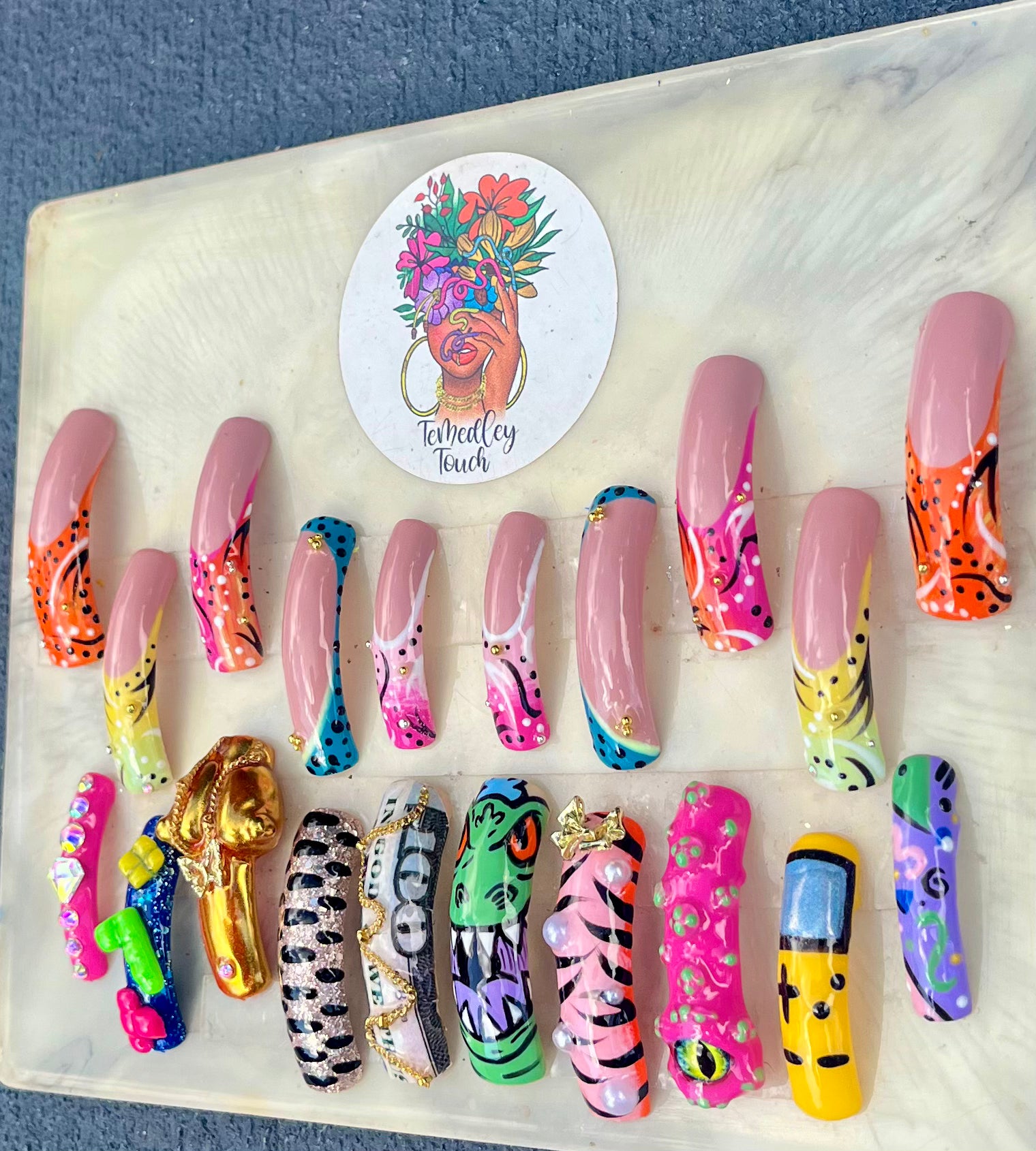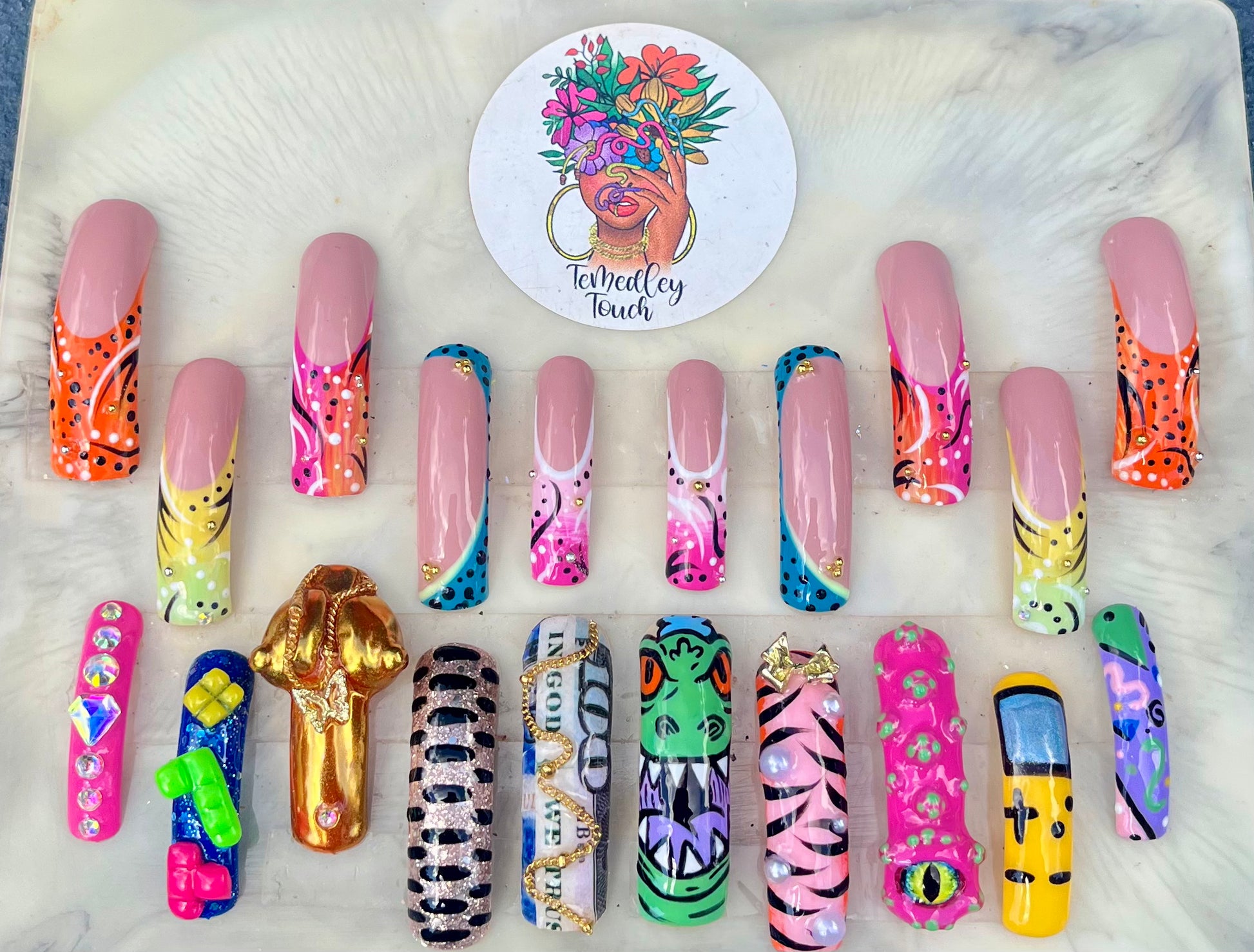 3xl curve press on nails / 90s theme nail art / freestyle set / gel polish / gloss finish / extra nails included