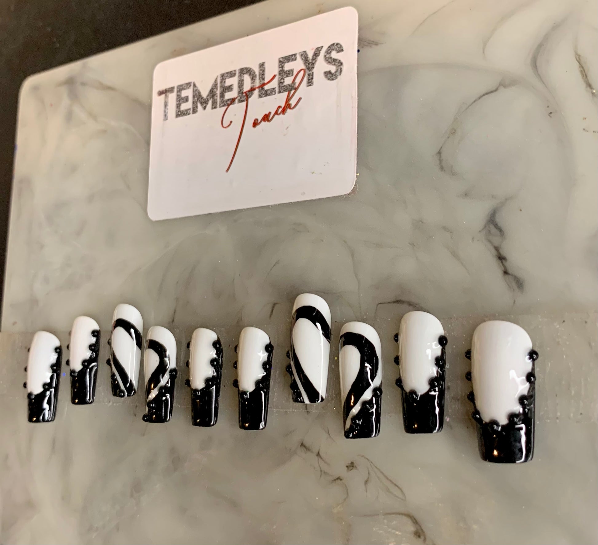Short square (ballerina) black and white press on nails / bling nails / nail art / white nails / black nails / gloss finish / gel polish