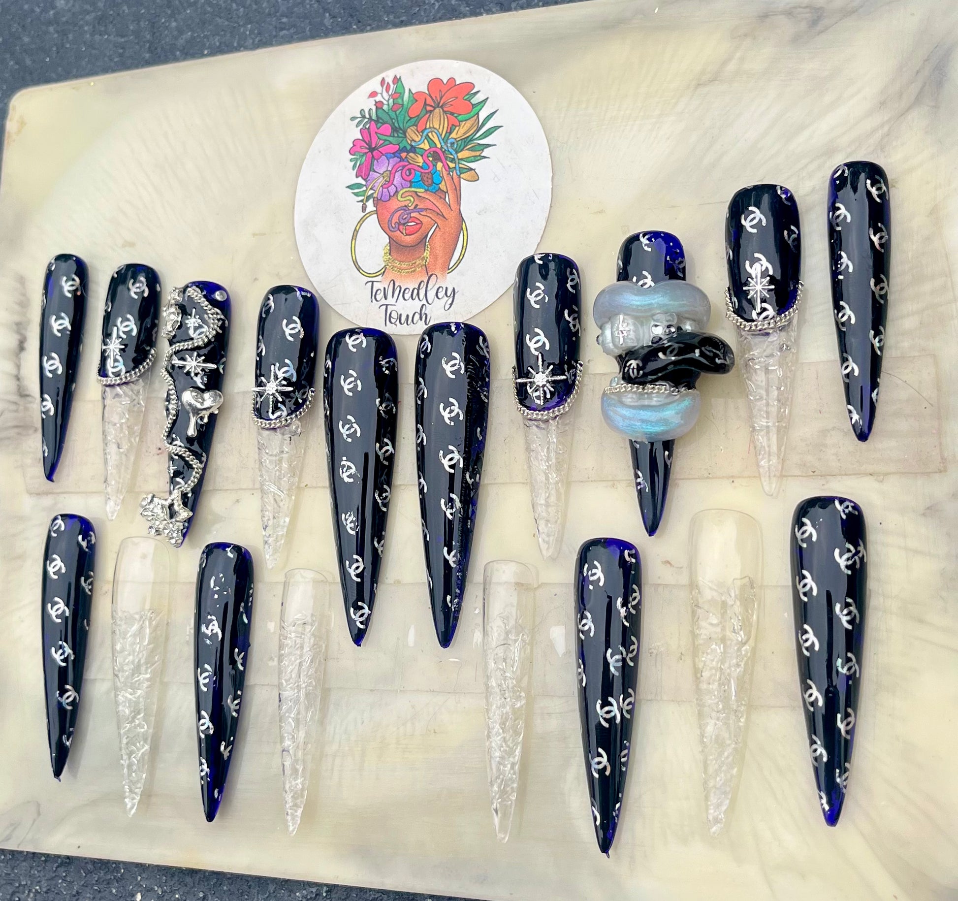 3xl coffin Press on nails / Chanel foil nail art/ 3d gel art / bling nails / icicle nail art / gel polish / gloss finish / extra nails included