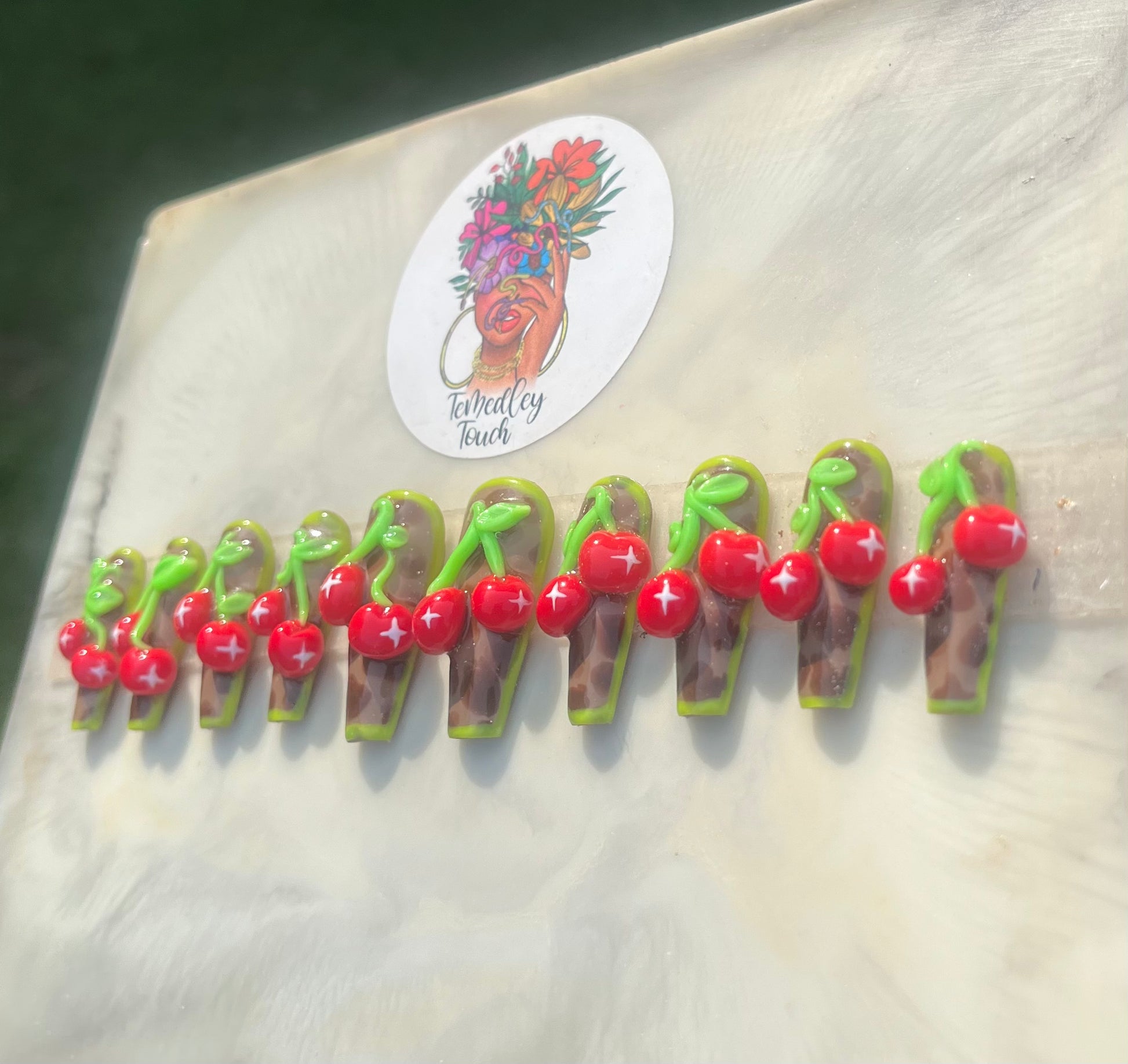 1xl coffin press on nails / cherry 3d nail art / blooming gel nails / gel polish / gloss finish