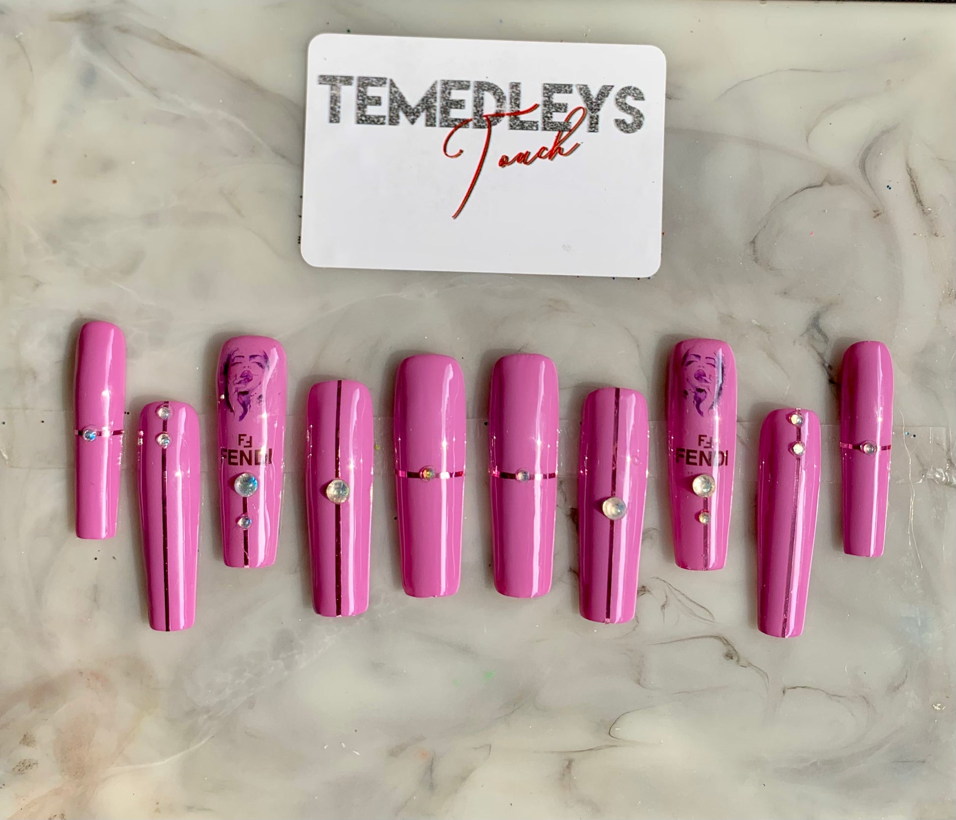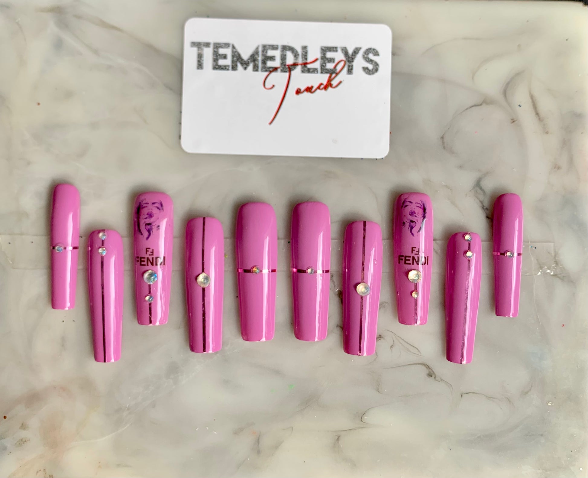 designer nails / nail art / nail design / bling nails / glossy finish / purple nails / gel polish / 2XL square press on nails