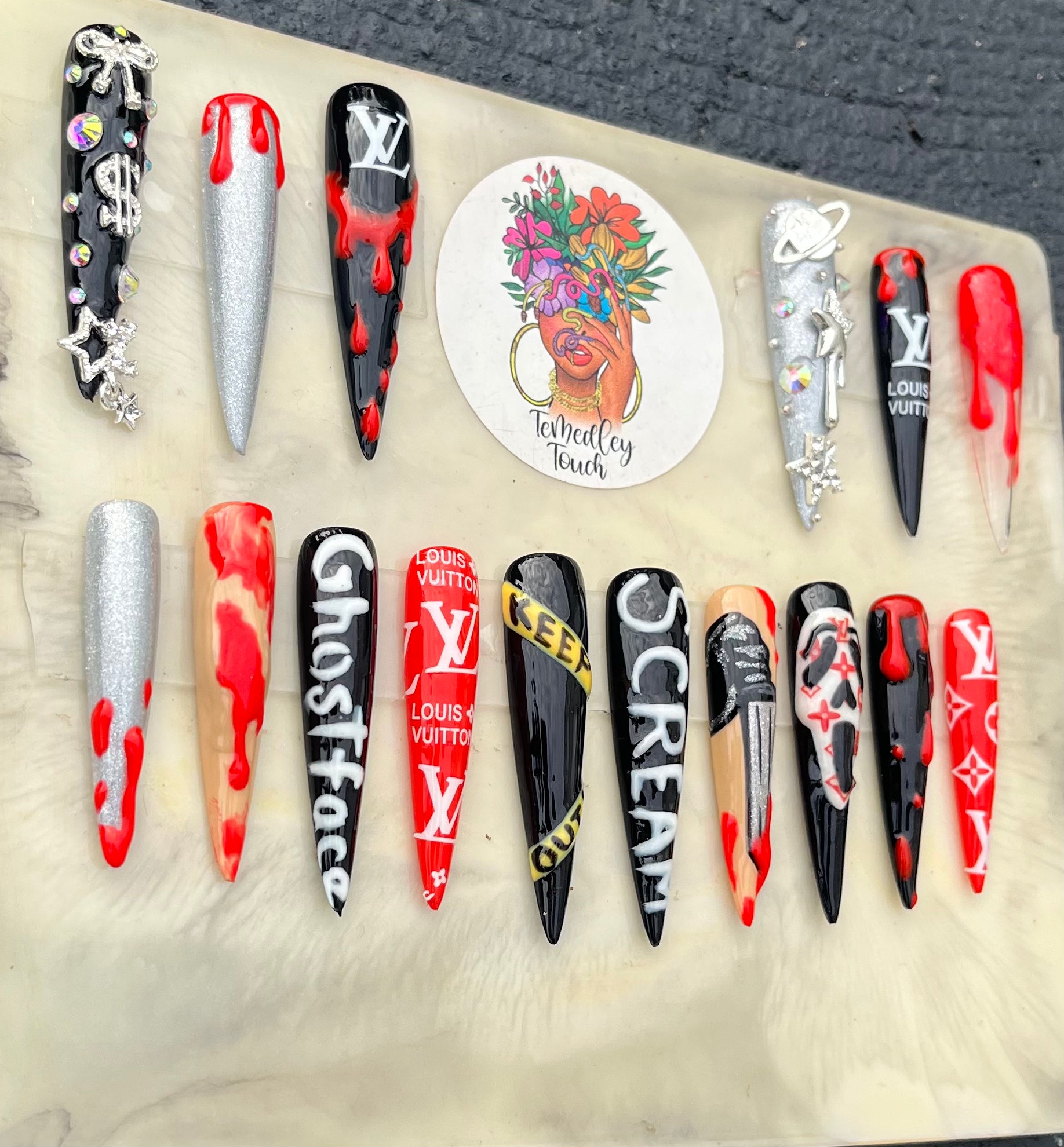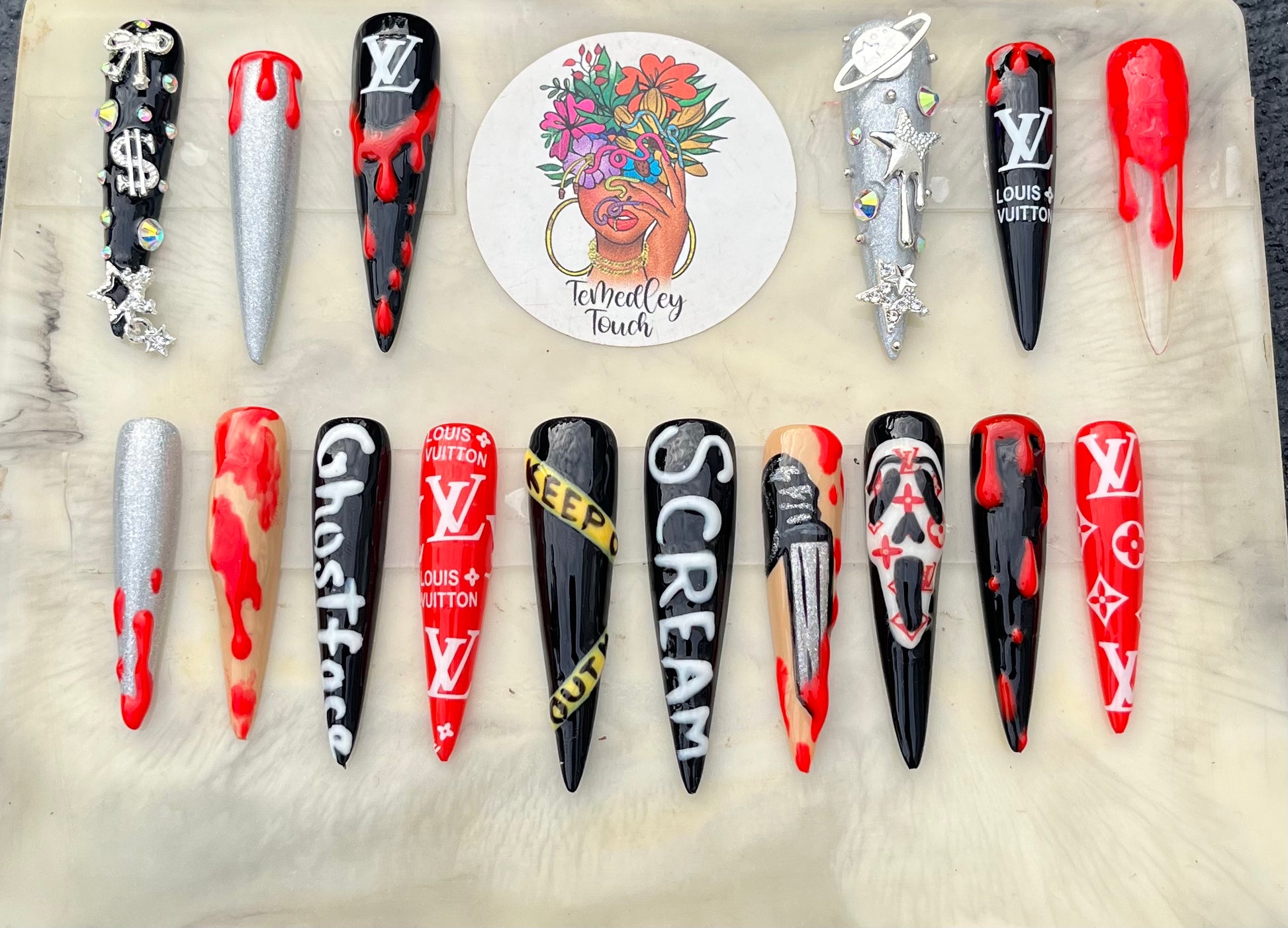 3xl stiletto press on nails / handpaintednails / nailart stickers / designer nails / GITD nails / custom nails / gloss finish / gel polish