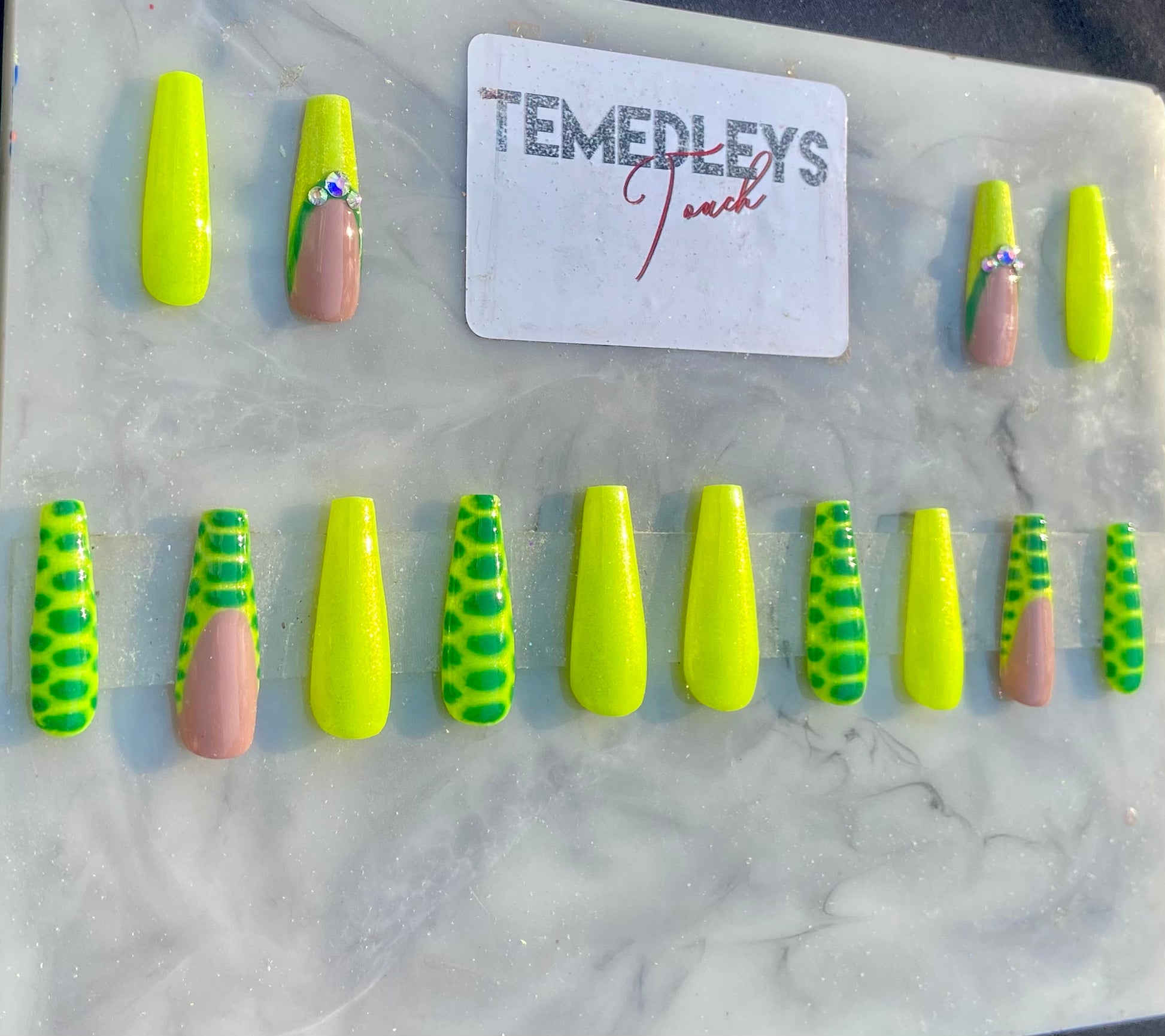 Neon green reptile press on nails