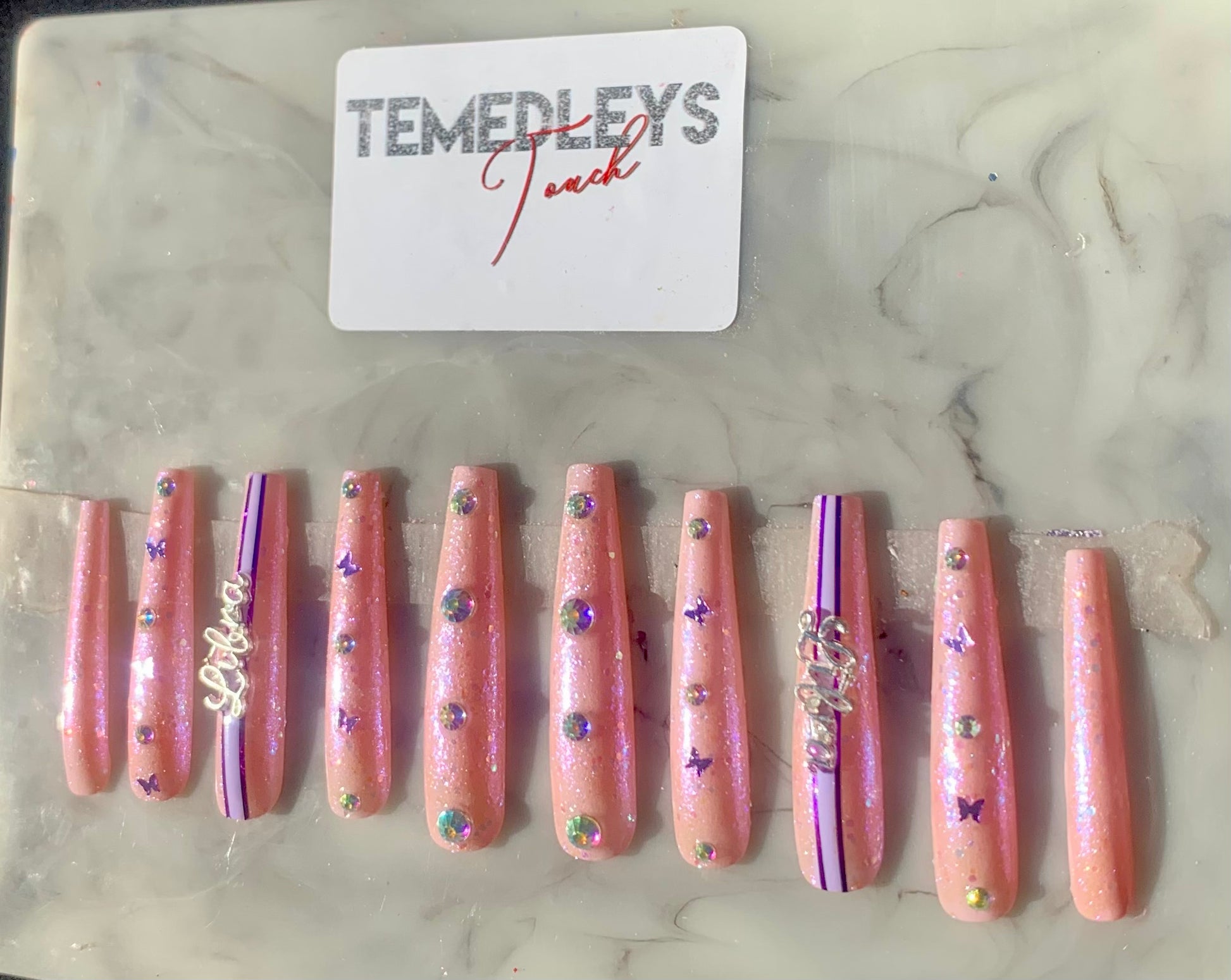 3xl coffin pink zodiac press on nails , hand painted nails,zodiac nails , bling nails , gel polish , gloss finish